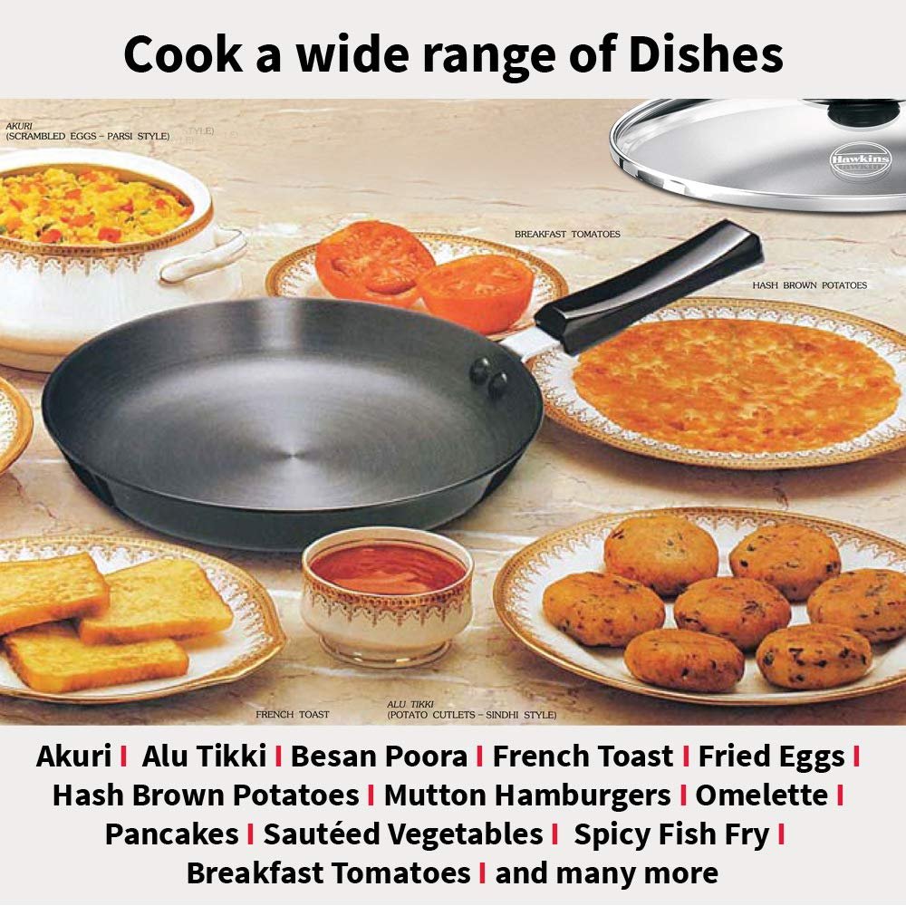 • Perfect for Akuri (Scrambled Eggs – Parsi Style), Alu Tikki (Potato Cutlets – Sindhi Style), Besan Poora (Savoury Bengal Gram Flour Pancakes), French Toast, Fried Eggs, Hash Brown Potatoes, Mutton Hamburgers, Omelette – Indian Style, Pancakes, Sautéed Vegetables, Spicy Fish Fry and Breakfast Tomatoes