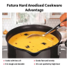 The 2 Litre Futura Hard Anodised Saucepan comes with a spout for pouring and is specially suitable for making tea or other beverages and boiling milk. The larger capacity Saucepans have flared rims. Saucepan comeS with SS lid. The Saucepans have one long handle.