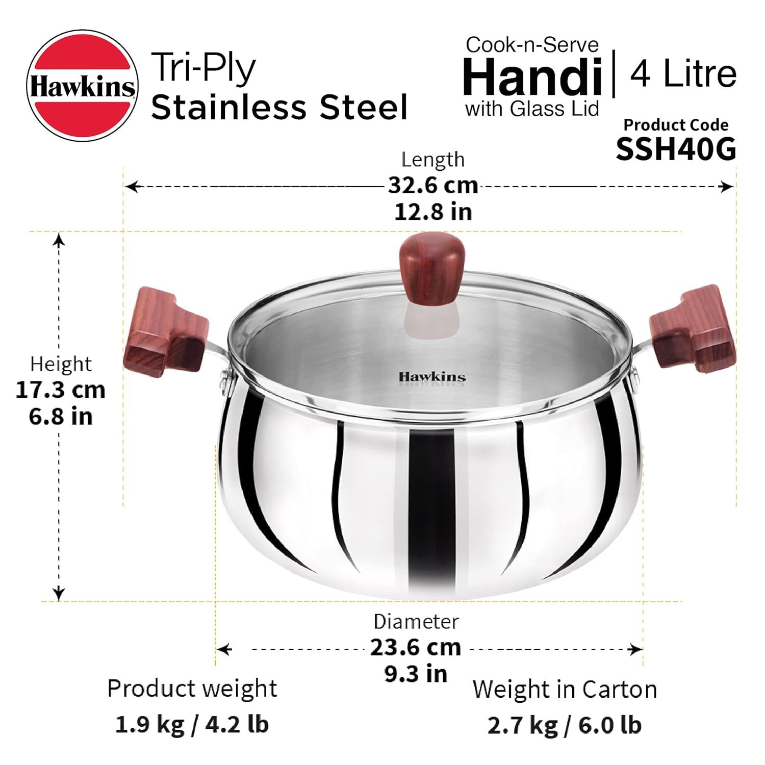 HAWKINS HANDI TRI-PLY SS 4LTR 20CM