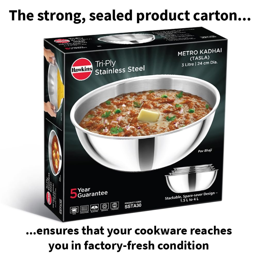 HAWKINS METRO KADHAI TRI-PLY SS 24CM