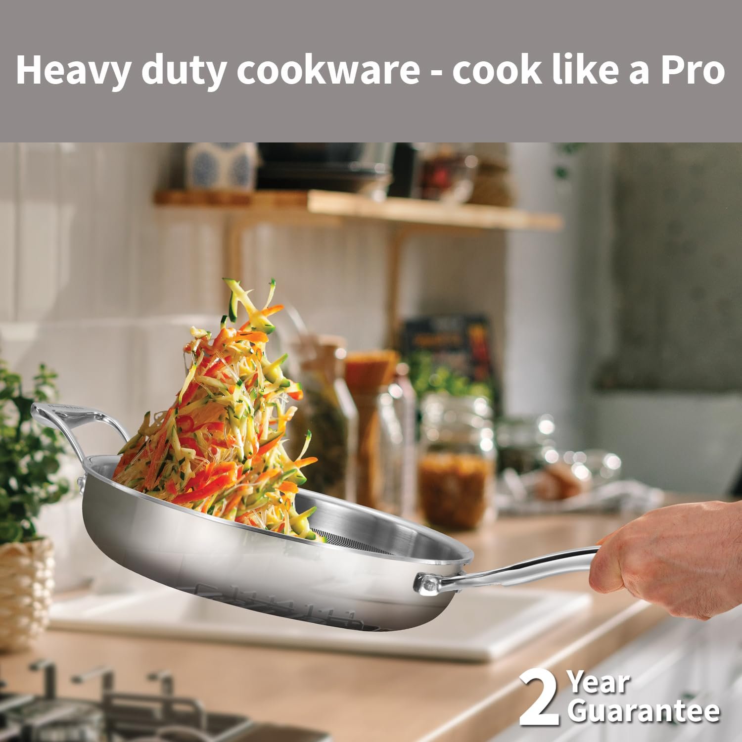 • Extra-Thick 3 mm Tri-Ply – Retains heat well. Cooks evenly