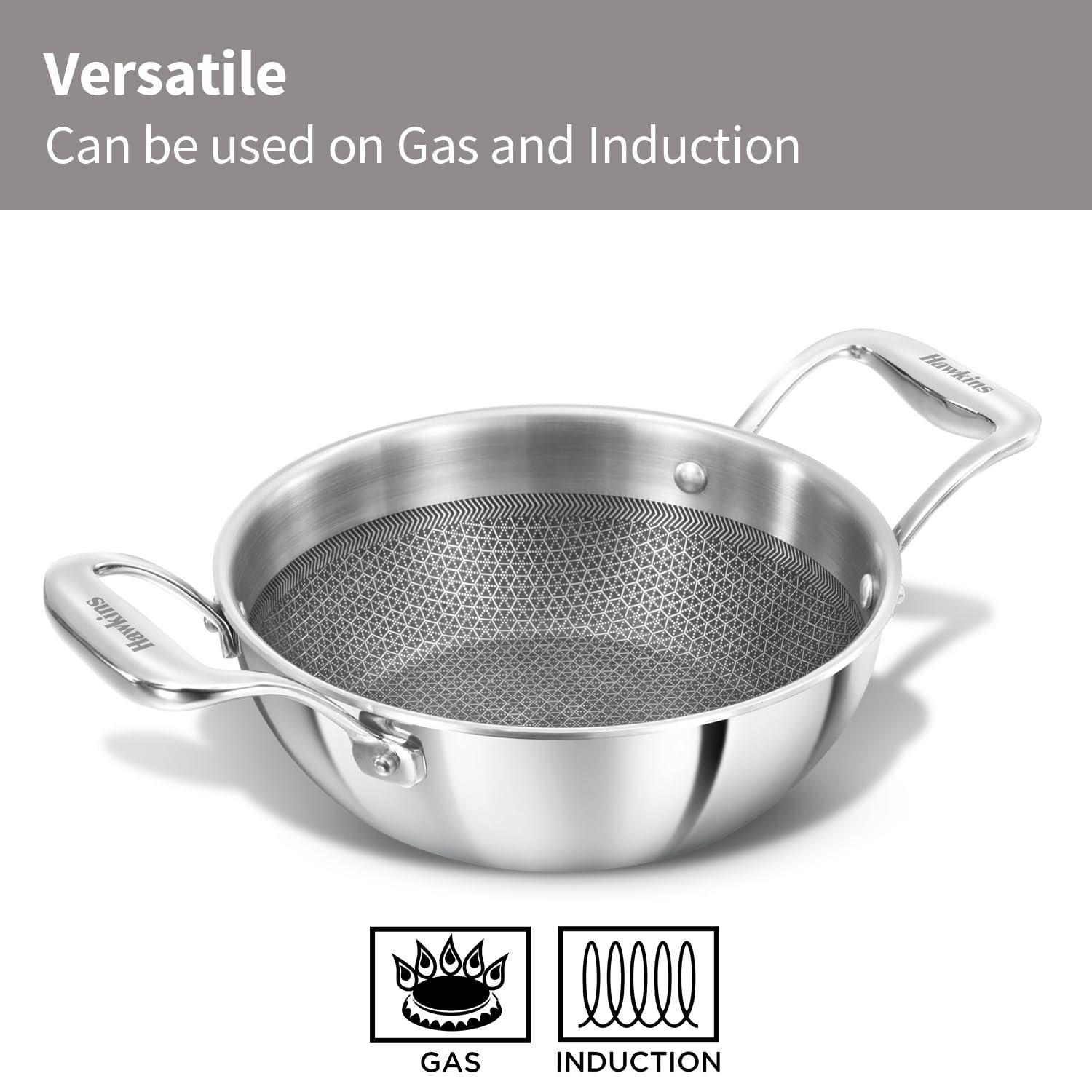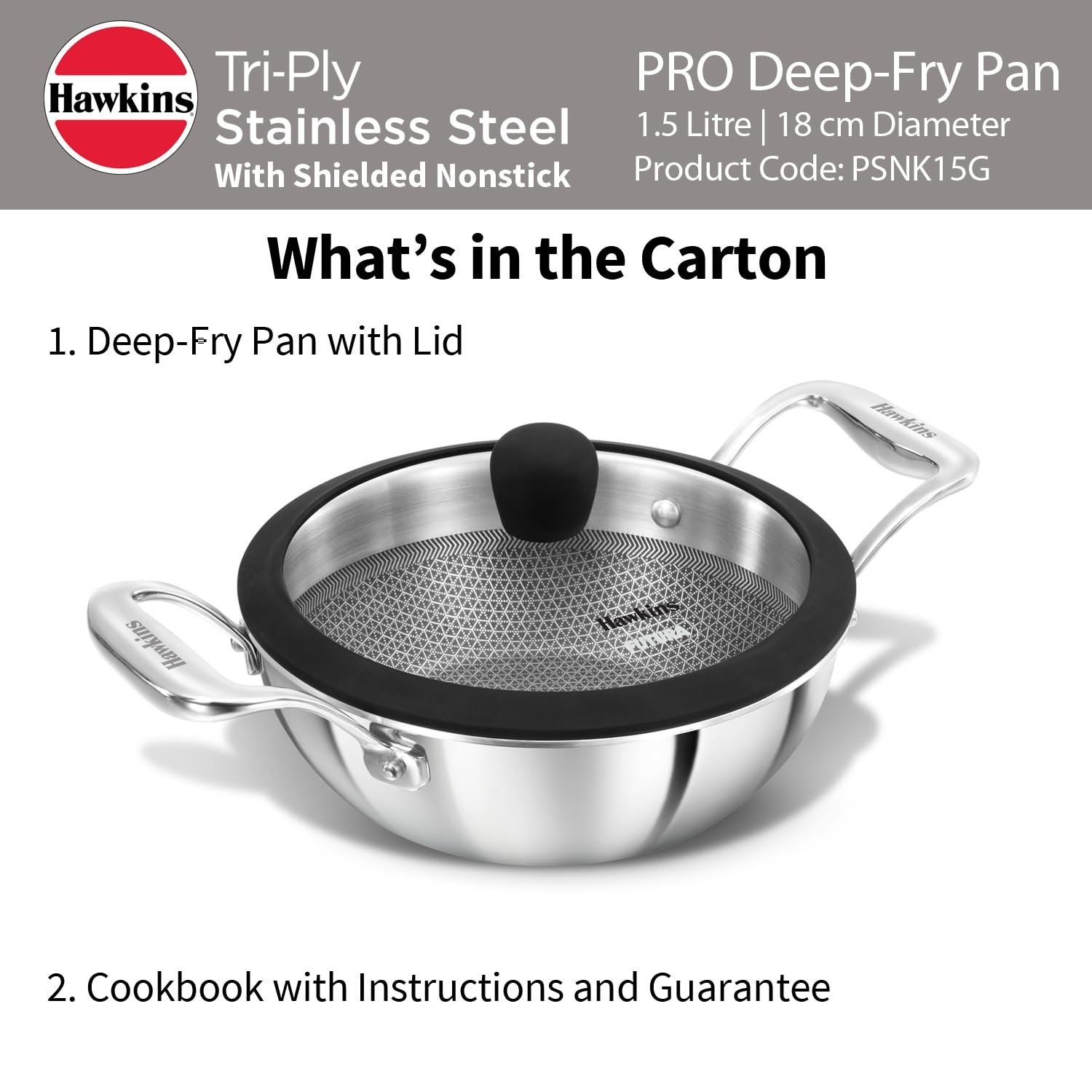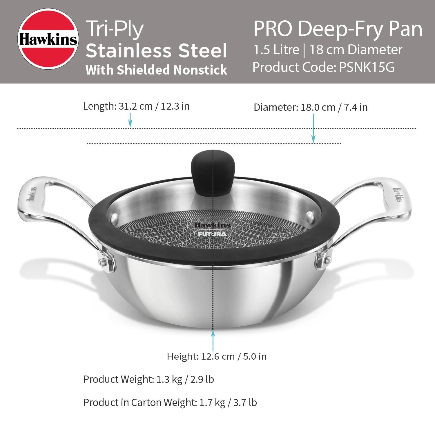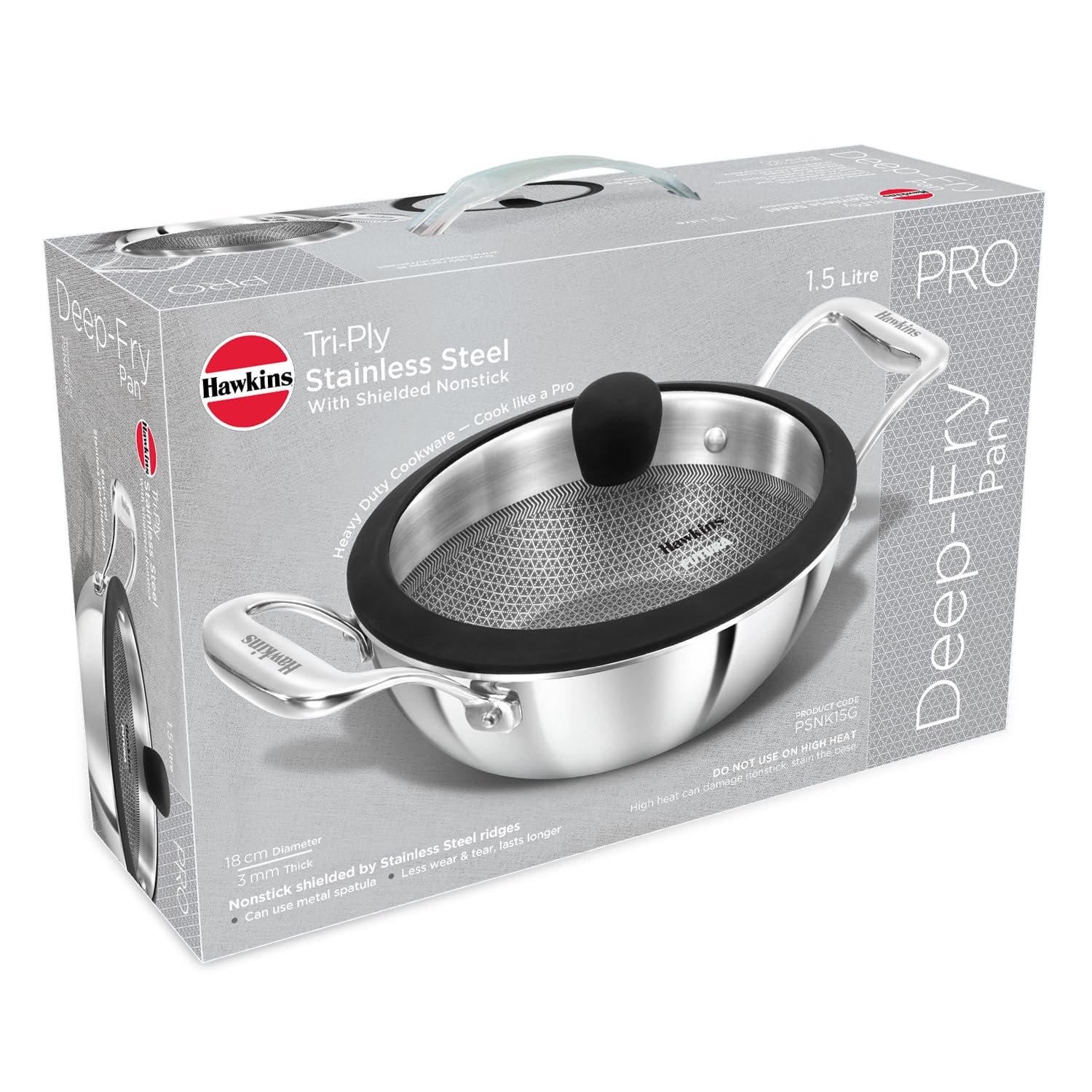HAWKINS NON STICK KADHAI PRO TRI-PLY SS SHIELDED 18CM