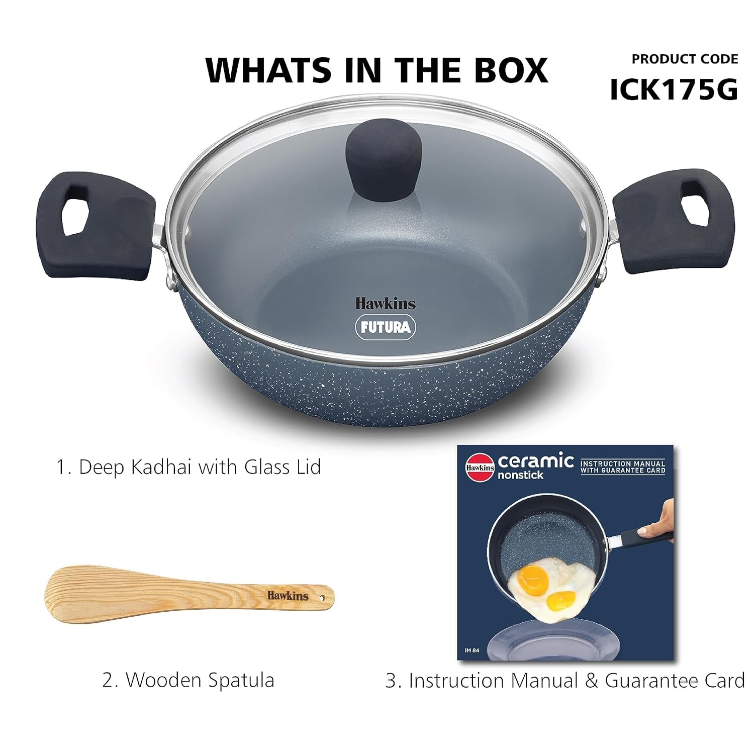 HAWKINS NONSTICK DEEP KADHAI CERAMIC W/L 20CM