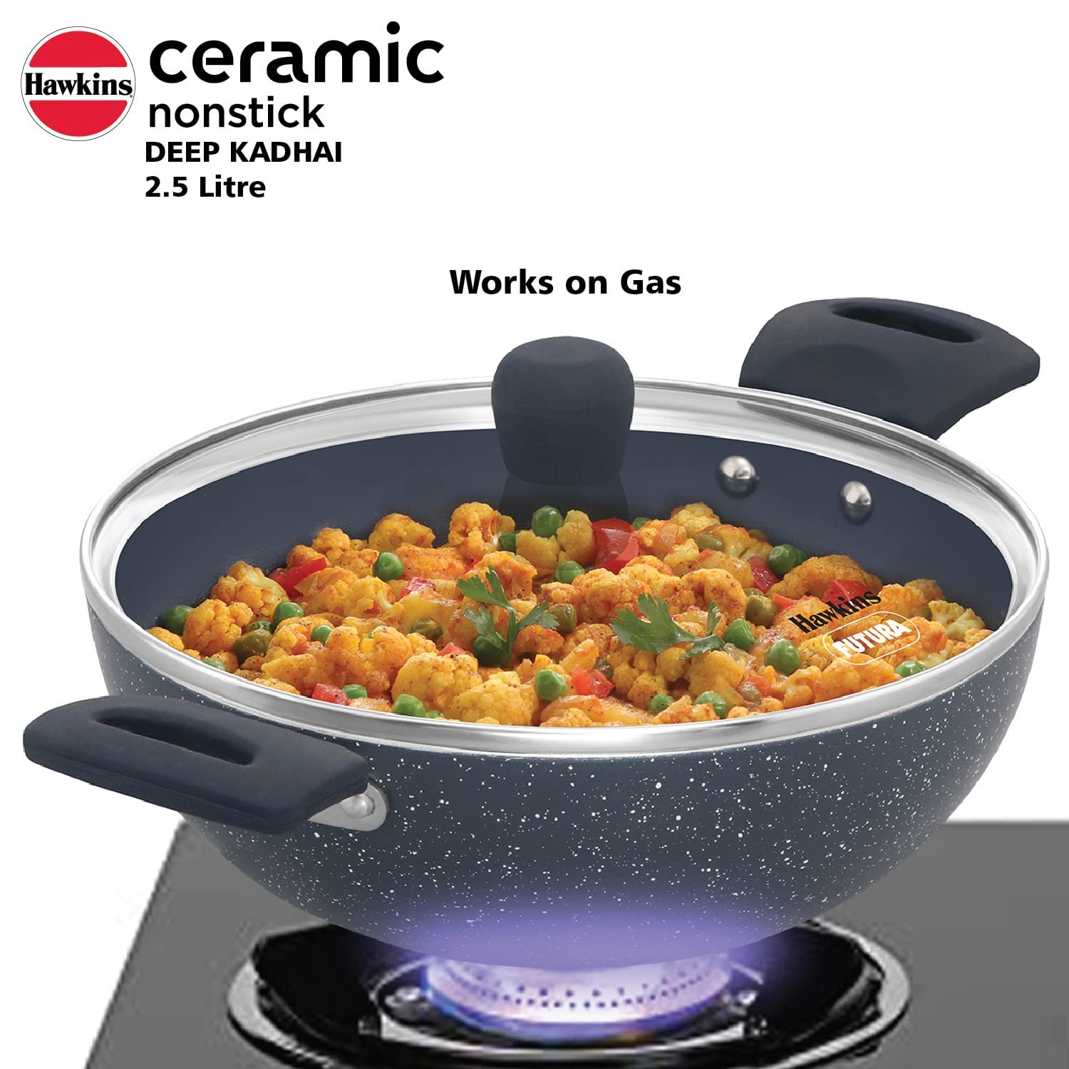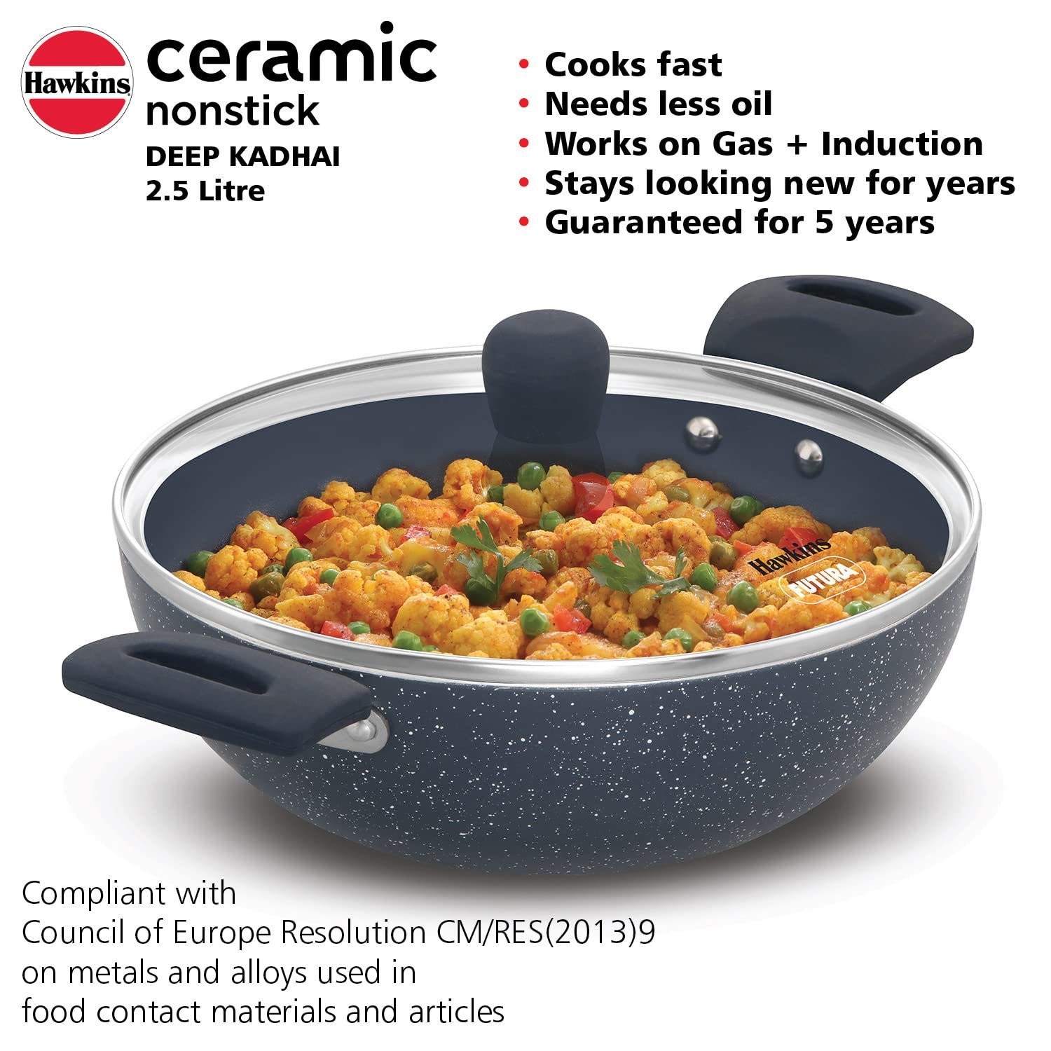 HAWKINS NONSTICK DEEP KADHAI CERAMIC W/L 23CM