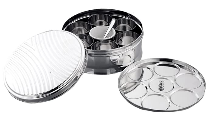 The masala dabba comes with 7 individual compartments that are removable and allow all the main spices for any dish to be available in one hand.