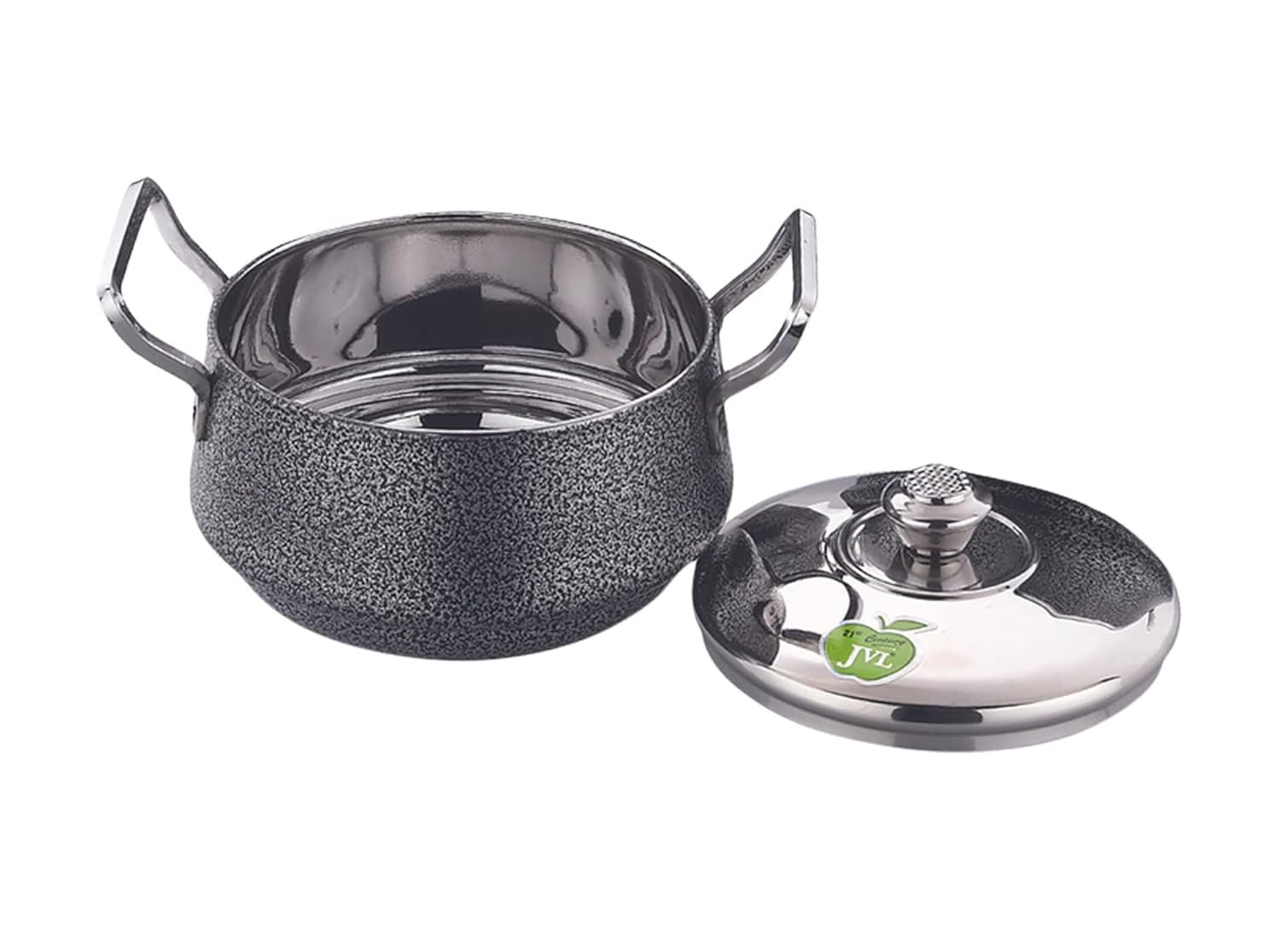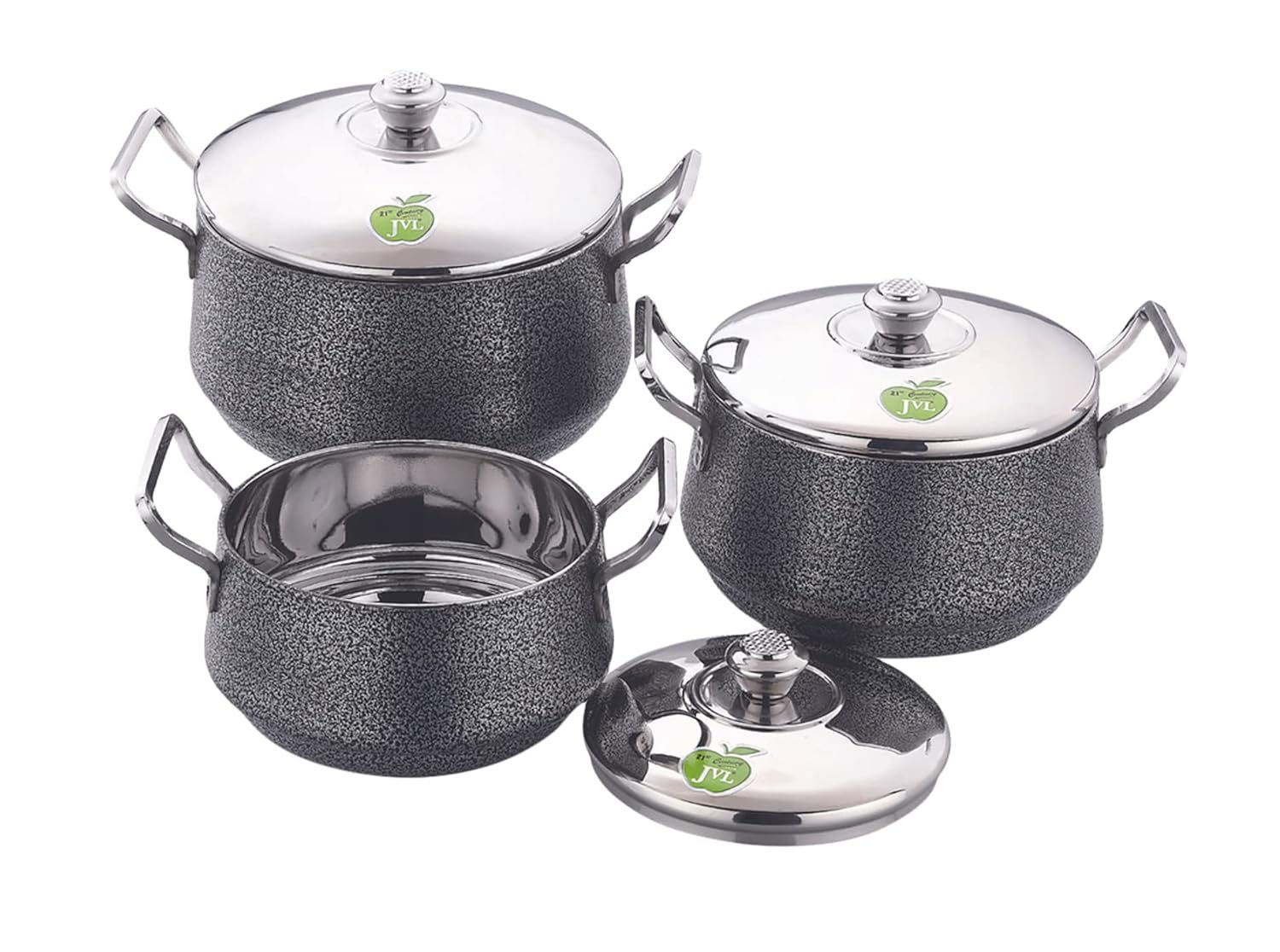 JVL Elite Pot Powder Coated Stainless Steel Cooking Sauce Pot Handi Vessel with Lid – 3 Pcs Set High Quality Rust Proof Stainless Steel 202 Grade Thick guage for High Durability Rust Proof 3 Pcs Set – 800ml | 1250 ml | 1900 ml; Top Diametre X Depth – 800ml – 12.5cm x 7.5cm| 1250 ml – 14cm x 9cm| 1900 ml – 16cm x 9cm.