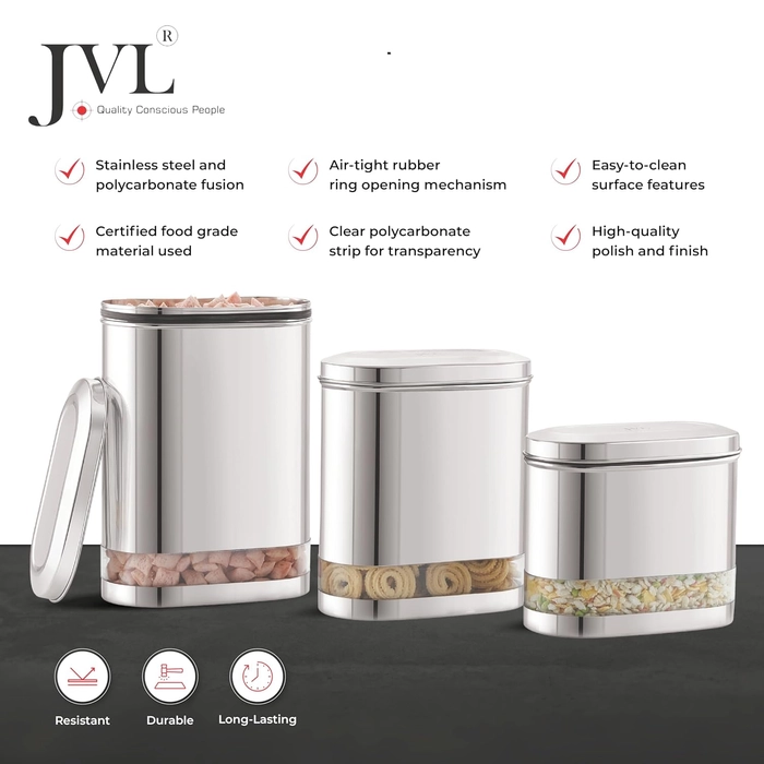 Incorporates a polycarbonate see-through section, allowing effortless visibility of stored contents without opening the canister, saving time and enhancing convenience.