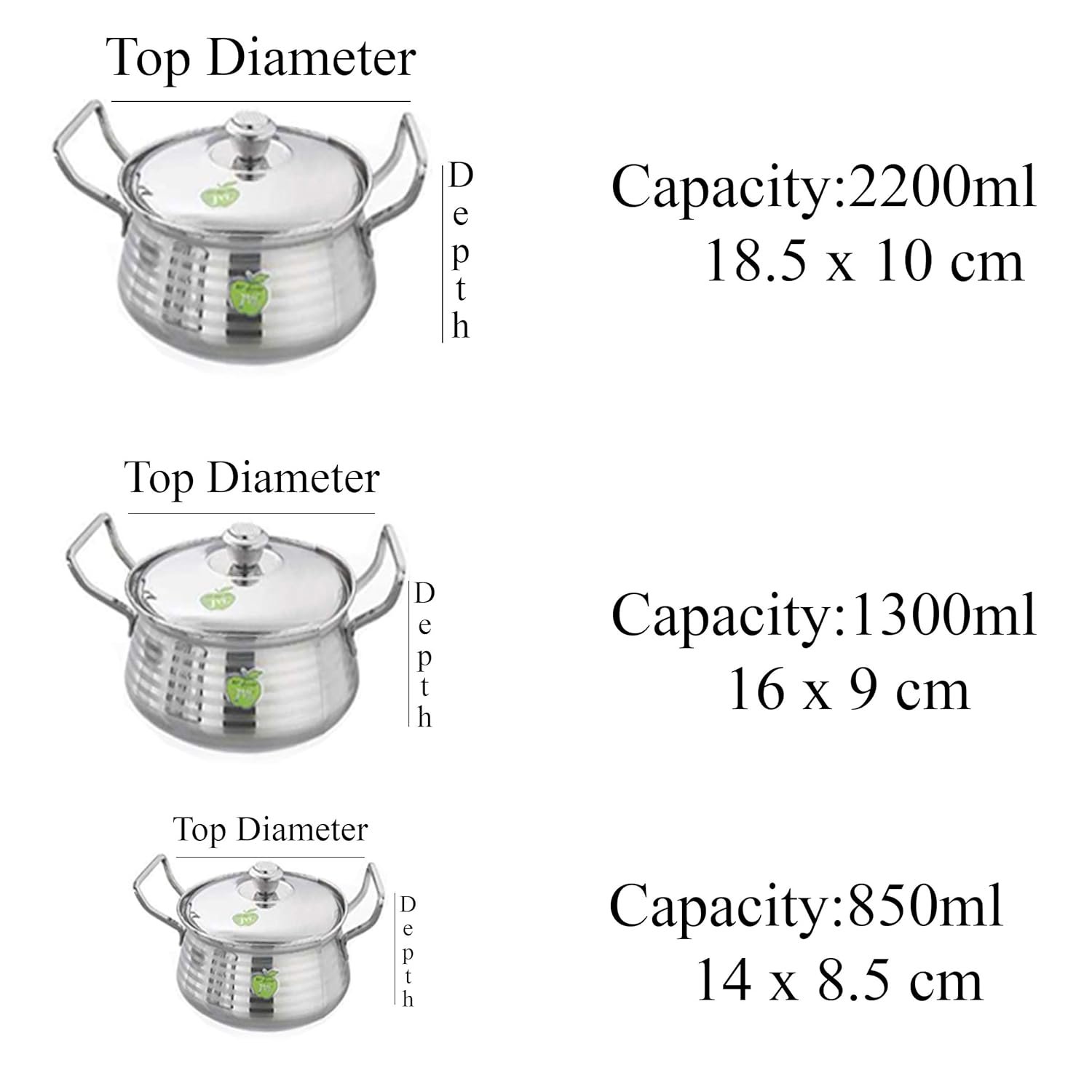 Opus Pot Silver Touch Stainless Steel Sauce Pot Handi with Lid – 3 Pcs Set ES_JVL_OP-1X3ST