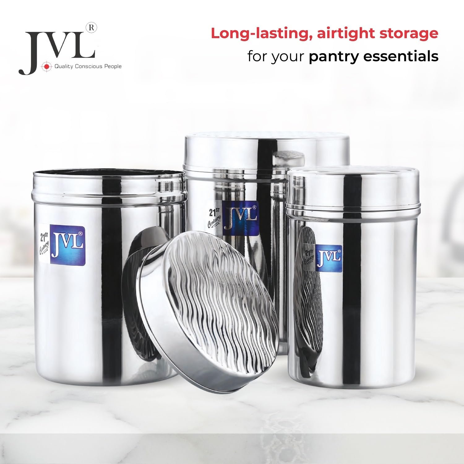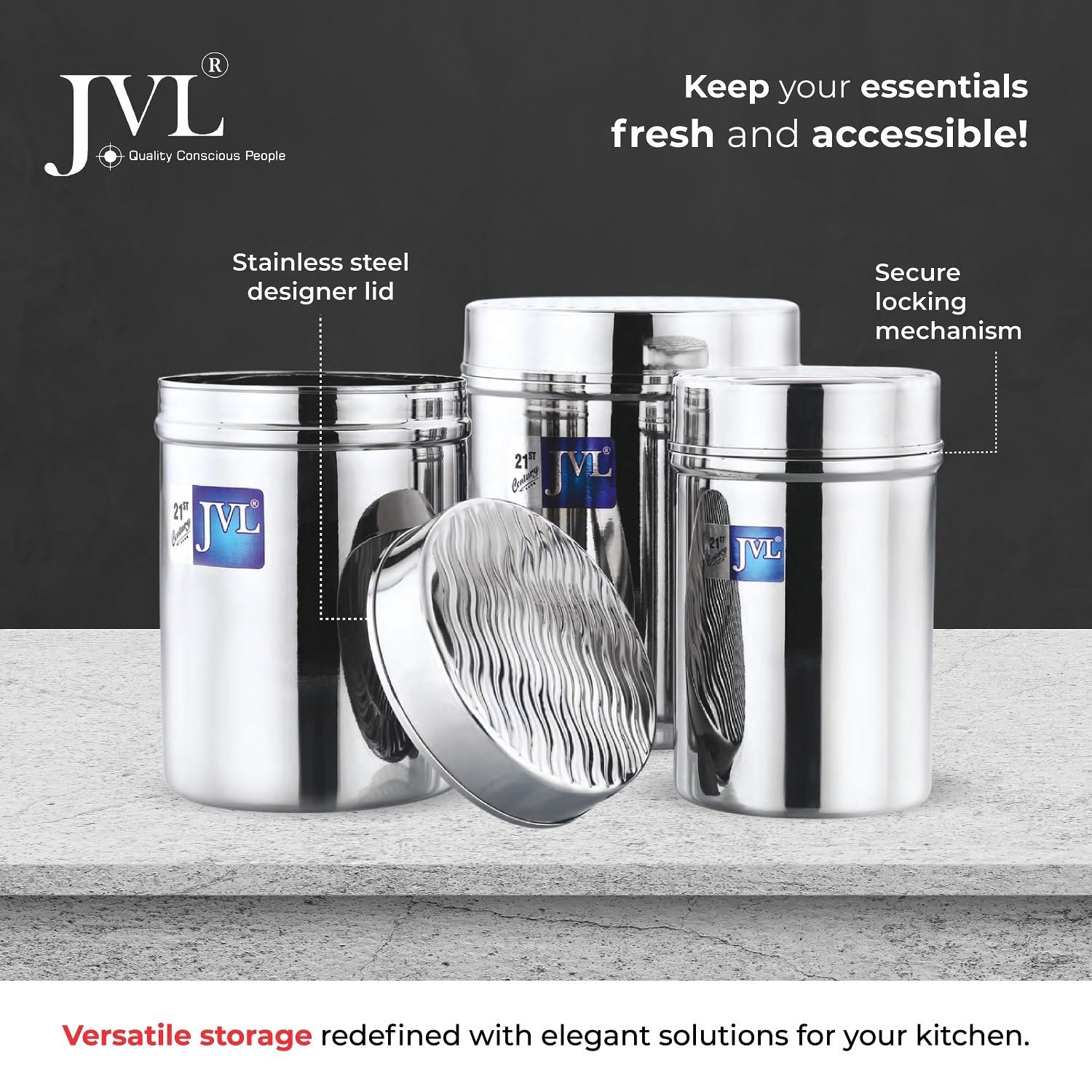 Stylish & Versatile Design – A modern blend of glass and steel that suits both contemporary and vintage kitchens; ideal for storing tea, coffee, sugar, spices, and more.
