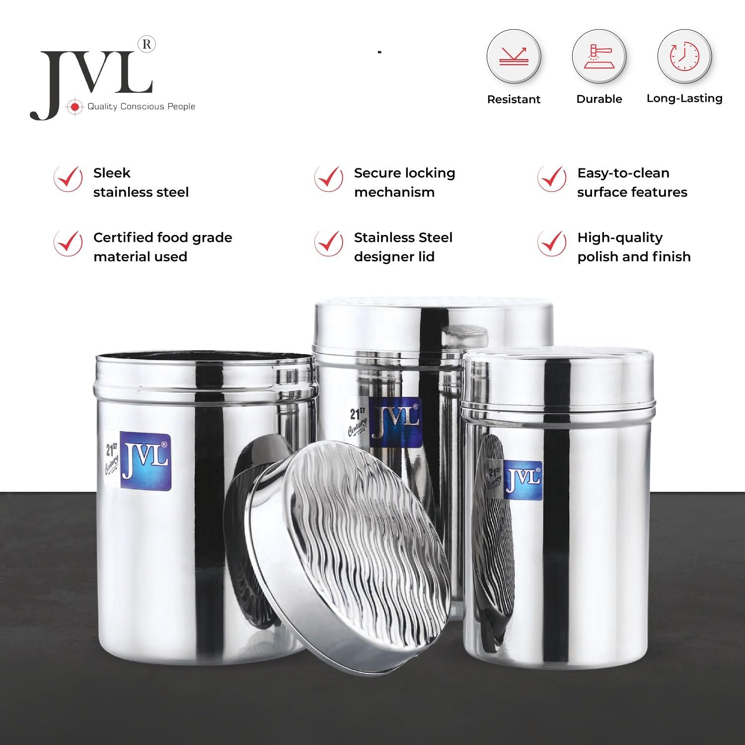 Easy to Clean & Maintain – Smooth, polished surface offers easy wipe-down cleaning and hassle-free maintenance, keeping your canisters pristine with minimal effort.