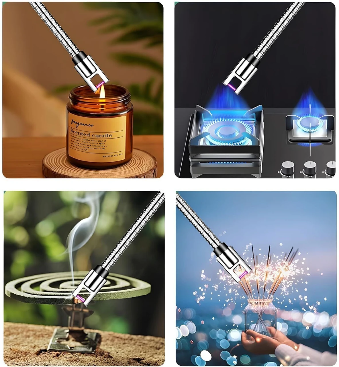 • 360°FLEXIBLE ELECTRIC PLASMA LIGHTER : Candle lighter made of stainless steel long neck and angled lighter head will help you comfortably and accurately light up the hardest to reach candles, stoves, barbecues, and more. And will keep your hands safely away from the action and keep your fingers burn-free.