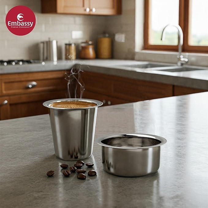 • ๐€๐ฎ๐ญ๐ก๐ž๐ง๐ญ๐ข๐œ ๐„๐ฑ๐ฉ๐ž๐ซ๐ข๐ž๐ง๐œ๐ž: Enjoy the authentic Indian coffee experience with this traditional Stainless Steel Coffee Dabra Set.