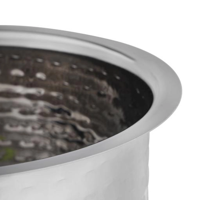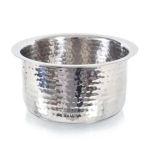 • The Kesariya SS Hammered Tope RB 18G (11.5 cm / 400 ml) is a compact and durable stainless steel cooking vessel designed for everyday kitchen use. Made from premium 18 gauge stainless steel, it ensures strength, hygiene, and long-lasting performance.