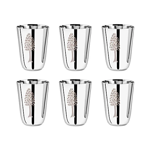 Where elegance meets durability. KESARIYA Oaktree Glass set features beautifully crafted stainless steel tumblers with a refined laser design. Perfect for serving water or beverages in style, each 300 ml glass offers lasting durability and a sleek finish. Ideal for everyday use or special occasions, they bring sophistication to your table.