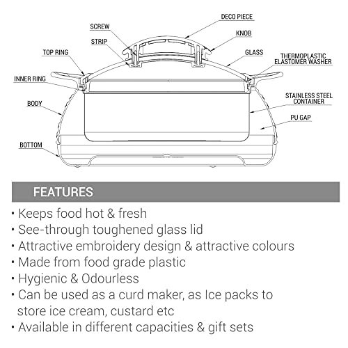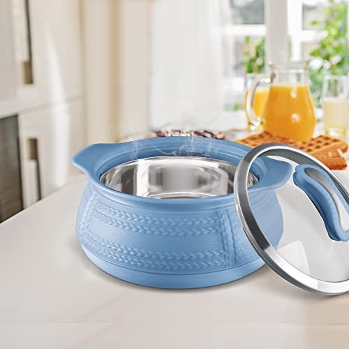 MILTON Weave 2500 Insulated Inner Stainless Steel Casserole with Glass Lid, 2.48 litres, Blue | BPA Free | Food Grade | Easy to Carry | Easy to Store | Ideal for Chapatti | Roti | Curd Maker