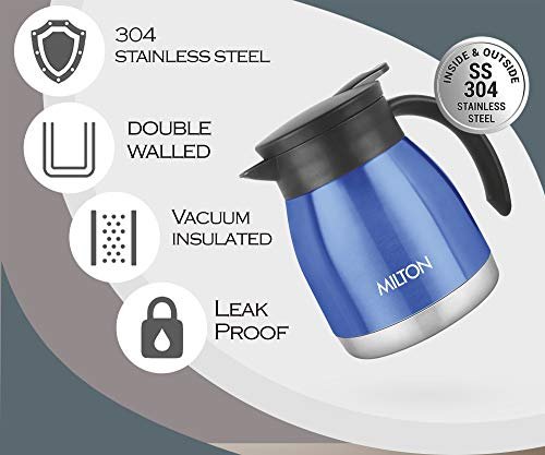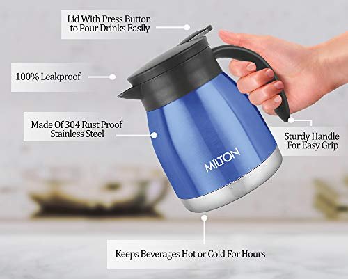 Lid with press button to pour drinks easily Sturdy handle for easy grip Made of 304 rust proof stainless steel 100% Leakproof Keeps drinks hot or cold for hours