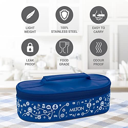 Colour: Blue; Material: Stainless Steel & Plastic; Package Content: 1 – Piece Lifestyle Lunch Box (2 Containers, 300 ml each), Dimension in cms (L x W x H): 11.7 X 11.7 X 5.2 Food Grade Plastic with Insulated Jacket and Stainless Steel Container: Made from high-quality, food-safe plastic used for the lid and free from harmful chemicals like BPA, this lunch box features an insulated jacket and 100% stainless steel containers. The combination of these elements provides effective thermal insulation, keeping your meals at the desired temperature for longer and ensuring your food remains safe, healthy, and fresh. Leakproof Design: Equipped with a secure, airtight seal to prevent spills and leaks, keeping your food fresh and your bag clean. Odor-Free Feature: Designed to be odor-resistant, this tiffin ensures that your meals stay fresh without absorbing unwanted smells, making it perfect for transporting a variety of foods. This tiffin is perfect for office, school, and outings. It offers convenient portion control and keeps meals at the right temperature with its insulated jacket, making it practical for enjoying and transporting your meals.
