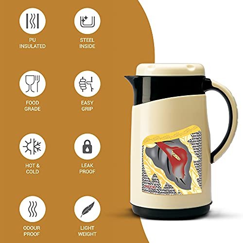 Color: Black; Material: Inner Stainless Steel; Package Contents: 1 – Piece Viva Tuff Jug (1 Litre), Product Dimension in cms (L x W x H): 13 X 13 X 23.3 Safety and Health: The jug features an inner part made from BPA-free stainless steel, ensuring no harmful chemicals leach into your beverages, making it safer for daily use, especially for drinking water and hot beverages. The durable plastic outer body provides a lightweight and robust design while preserving the integrity of the stainless steel interior. Temperature Retention: The PU insulation in the jug helps maintain the temperature of the liquid inside, effectively keeping hot drinks hot and cold drinks cold for several hours. This design ensures that beverages remain at the desired temperature for extended periods, making it ideal for both hot and cold drinks. Minimized Spills: With a well-designed spout, the risk of spilling is significantly reduced. The spout is usually angled and sized to direct the liquid effectively into cups or glasses, ensuring a clean and efficient pour. This jug keeps beverages at the perfect temperature for hours, making it ideal for home, office, travel, and outdoor use with its durable construction and effective insulation.