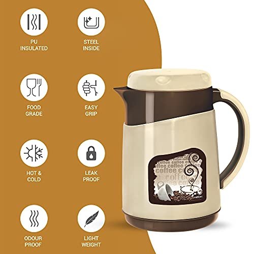 Color: Brown; Material: Inner Stainless Steel; Package Contents: 1 – Piece Viva Tuff Jug (500 ml) Insulated Jug with stainless steel inner-wall, integrated handle for easy carrying. Keeps beverages hot or cold for hours. It is tightly sealed from top to bottom making it more Hygienic. Leave the lid open for some time before pouring any liquid into it. Contemporary dual-tone finish and body-graphics, wide-mouthed for easy filling and cleaning. It is BPA free, Leak proof, odour proof and light weight. Fill the Jug upto the brim. This ensures maximum heat retention. Pre-condition Jug with hot water if using for HOT beverage and cold water if using for COLD. Enhance the look of your dining table with its exclusive shape and design. The perfect serving jug for any special occasions or household like birthday or anniversary parties, holiday, picnic. Ideal for Tea, Coffee, water, hot beverages, juices, shakes and soup. This Product Is Under one Year Warranty From The Date Of Retail Purchase Against Any Manufacturing Defects In Material And Workmanship. The Warranty Does Not Cover Damages Resulting From Accidents, Mishandling Or Tampering With The Mechanism. Warranty Valid Against Producing Original Bill Endorsed By Seller.
