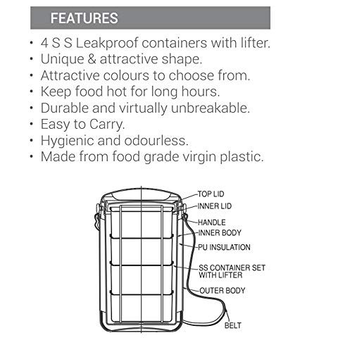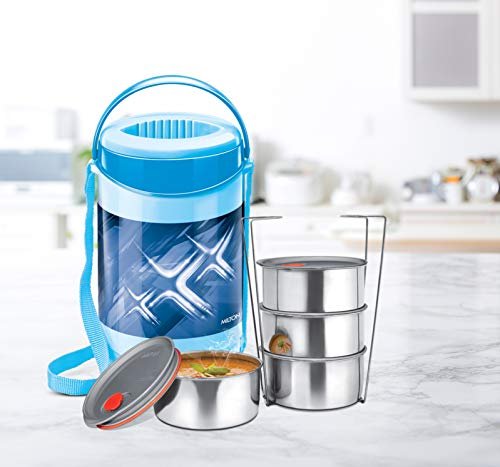 Milton Vector Deluxe 4 Plastic Leak Lock Tiffin Box Set, 4-Pieces, Blue