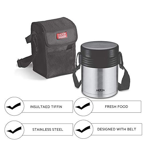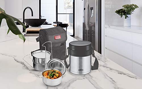 MILTON Tuscany 3 Thermosteel Tiffin With Plain Lid, Black