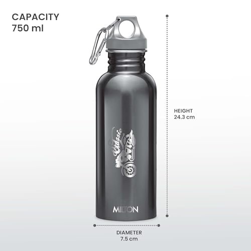 Color: Black; Material: Stainless Steel; Package Content: 1 – Piece Alive Stainless Steel Water Bottle (750 ml); Dimension in cms(L x W x H): 7.5 x 7.5 x 24.3 Single Wall Fridge Steel Bottle with inside outside stainless steel which is rust free. This bottle has a screw top with a handle to carry it around easily and is designed for a firm grip, making it the perfect partner for all your sporty adventures. This Bottle is unique in shape, it has leak proof technology, which make this product easy to carry at school, travelling and work, it is Odour Free and 100 percent Food Grade This bottle is easy to clean and maintain, Use a mild detergent or dish wash liquid and clean on the inside with a bottle brush.