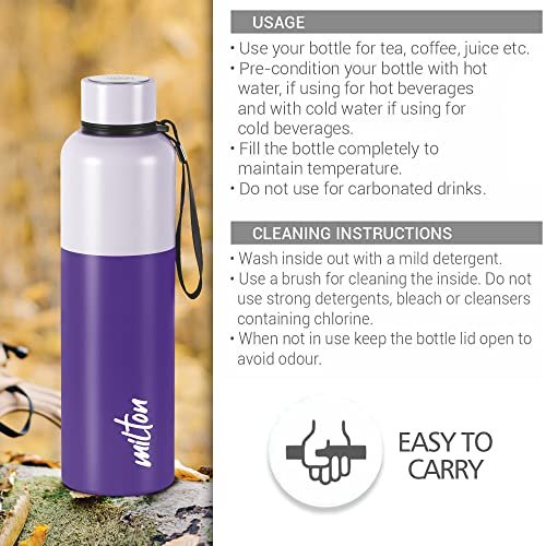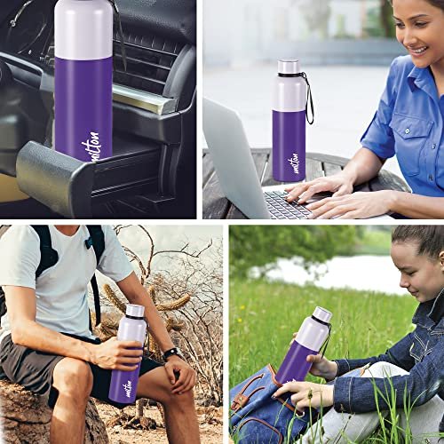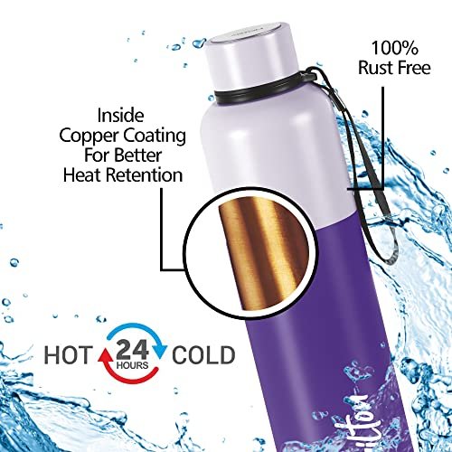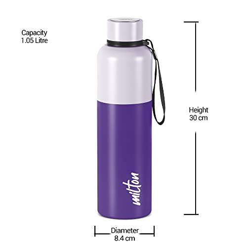 Color: Violet; Material: Stainless Steel; Package Content: 1 – Piece Ancy Thermosteel Water Bottle (1.05 Litre); Dimension in cms (L x W x H): 8.4 x 8.4 x 30. QUALITY & DURABILITY: SS 304 Inside and outside makes this bottle rust proof, which makes it durable also. This bottle is easy to carry also as it comes with carry string for easy carrying. It can perfectly fit in side pocket of backpack. TEMPERATURE RETENTION: Double walled Vacuum insulated technology keeps beverages hot or cold for 24 hours, Inner copper coating for better temperature retention. A unique bottle that makes pouring completely hassle-free and spill-free. Use with Ease: This Water Bottle made from stainless steel, which makes it completely Safe to Store your water & beverages for the long time. This will help to prevent natural properties of water & beverages like tea, coffee, juices Etc. USER FRIENDLY: This water bottle is easy to grab, while you are on the go. It is easy to carry anywhere you go office, home, picnics, outdoor, campaning. Ideal for self use and gifting.