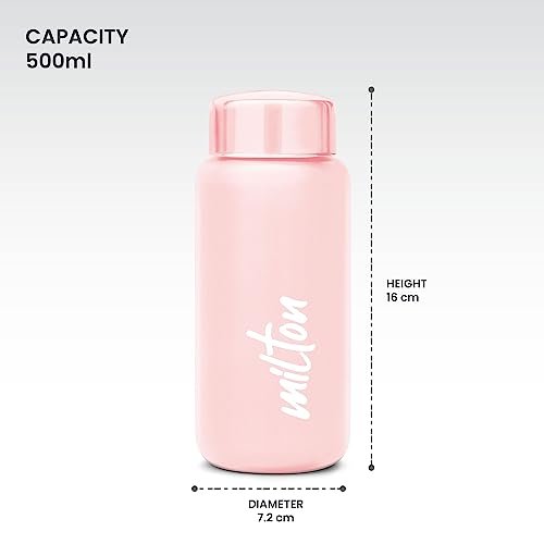 MILTON Aqua 500 Stainless Steel Water Bottle, 500 ml, Light Pink | Single walled | Leak Proof | Easy Grip | Easy to Carry | Gym Bottle | Home | Kitchen | Hiking | Treking Bottle | Travel Bottle
