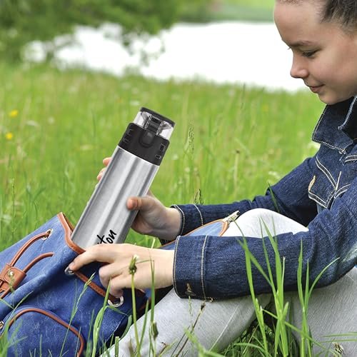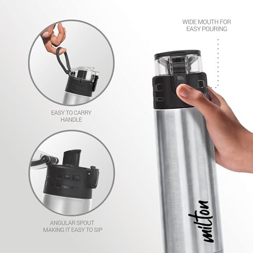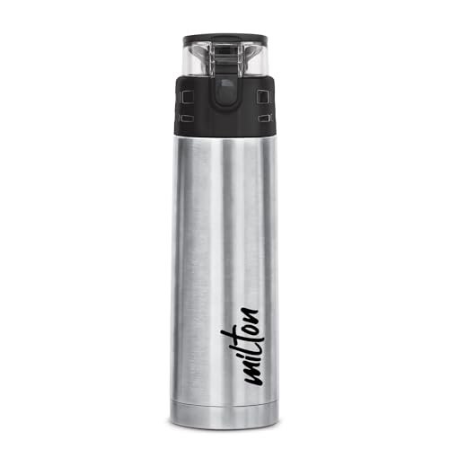 Color: Silver; Material: Stainless Steel; Package Content: 1 – Piece Atlantis Thermosteel Bottle (350 ml); Dimension in cms (L x W x H): 7 x 7 x 21.6 Double walled vacuum insulated water bottle is made up of a durable 18/8 stainless steel, built to withstand the demands of everyday use. Inner copper coating for better temperature retention. Vacuum insulated technology keeps beverages hot or cold for hours. Lid with one touch button to open, Angular spout, easy to sip. This bottle is comfortable to hold in hand. Ideal for gifting to kids, family and friends and also during occasions. Color: Black, Material: Stainless Steel Pre-condition bottle with hot water if using for hot beverage and cold water if using for cold.