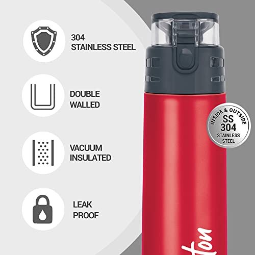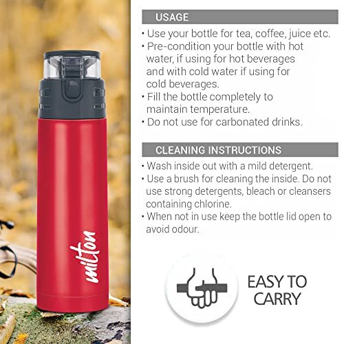 Milton Atlantis 600 Thermosteel Insulated Water Bottle, 500 ml, Green | Hot and Cold | Leak Proof | Office Bottle | Sports | Home | Kitchen | Hiking | Treking | Travel | Easy to Carry | Rust Proof