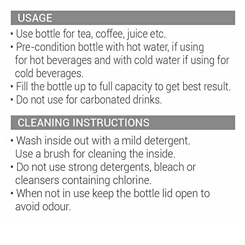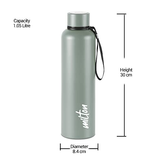 Color: Grey; Material: Stainless Steel; Package Content: 1 – Piece Aura Thermosteel Bottle (1.05 Litre); Dimension in cms (L x W x H): 8.4 x 8.4 x 30. Double walled Vacuum insulated technology keeps beverages hot or cold for 24 hours, Inner copper coating for better temperature retention. A unique bottle that makes pouring completely hassle-free and spill-free. This Water Bottle made from stainless steel, which makes it completely Safe to Store your water & beverages for the long time. This will help to prevent natural properties of water & beverages like tea, coffee, juices Etc. SS 304 Inside and outside makes this bottle rust proof, which makes it durable also. This bottle is easy to carry also as it comes with carry string for easy carrying. It can perfectly fit in side pocket of backpack. The travel water bottle comes with a leak proof lid that will prevent any accidental spills. This water bottle is easy to grab, while you are on the go. It is easy to carry anywhere you go office, home, picnics, outdoor, campaning. Ideal for self use and gifting.
