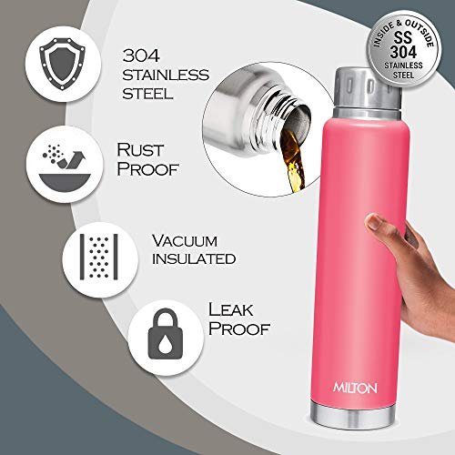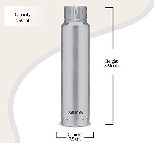 Milton Elfin 750 Thermosteel 24 Hours Hot and Cold Water Bottle, 750 ml, Silver | Leak Proof | Easy to Carry | Office Bottle | Hiking | Trekking | Travel Bottle | Gym | Home | Kitchen Bottle