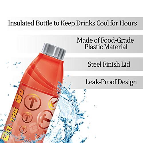 Keeps your drinks cold for long hours 100 percent leak proof Fits easily into bags and made from food grade material Color: Red, Material: Plastic, Shape: Round Package Contents: 1-Piece Bottle (900ml)