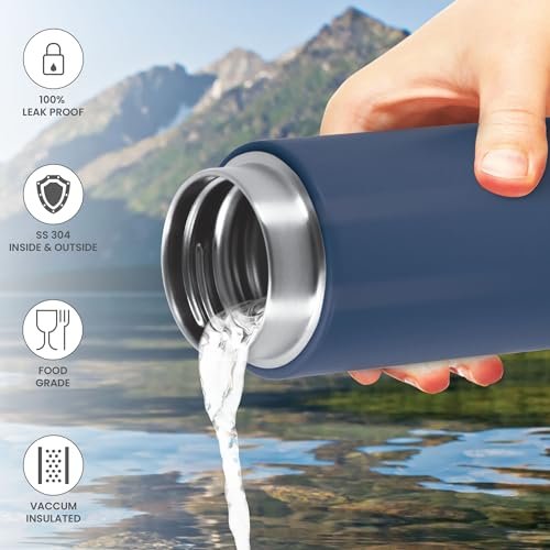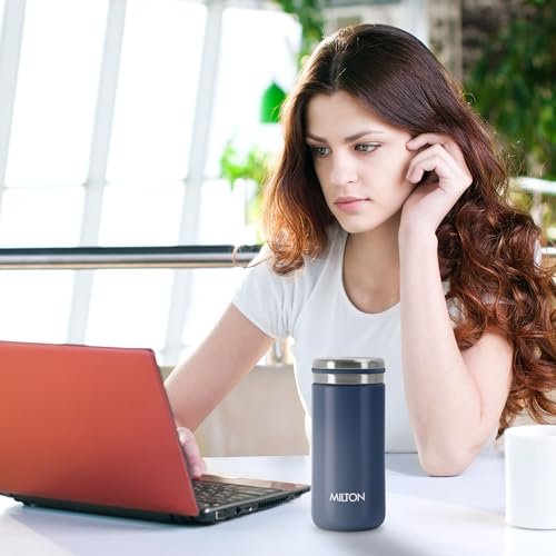 Color: Blue; Material: Stainless Steel; Package Content: 1 – Piece Shiny Bottle (200 ml); Dimension in cms (L x W x H): 5.8 x 5.8 x 13.2 Vacuum insulated bottle is made up of a durable SS 304 inside and outside, built to withstand the demands of everyday use. This vacuum insulated technology keep beverages hot or cold for hours This Thermosteel Bottle has unique, leak proof technology, which make this product easy to carry at school, travelling and work. This portable bottle from Milton flaunts a beautifully slender construction which looks sleek, elegant and attractive. The smooth steel body is a delight to hold in your hands. The sleek structure of this bottle makes it ideal for carrying with you on any day-trip or hike. Its compact shape allows it to be slipped into the side pocket of your bag for easy access. The leak-proof lid keeps your drink secure the whole time.