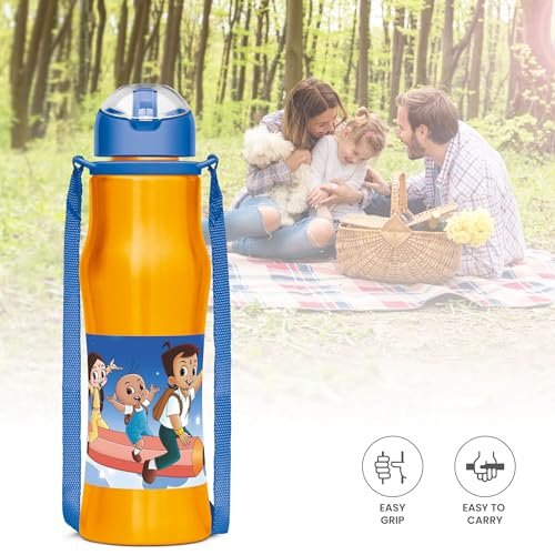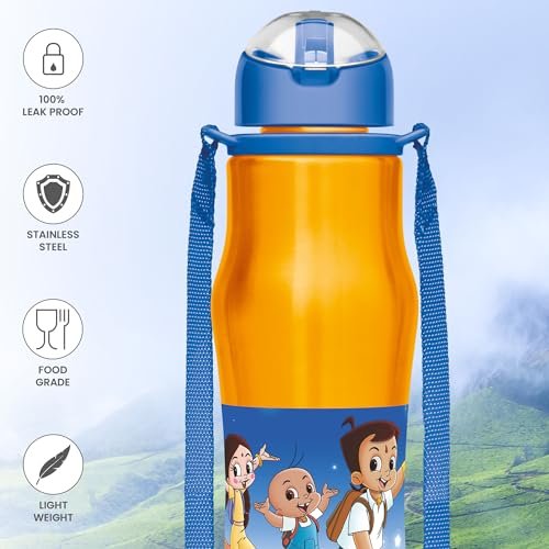 Color: Orange; Material: Stainless Steel; Package Content: 1 – Piece Sipmate Chhota Bheem Kids Water Bottle (600 ml); Dimension in cms (L x W x H): 7.85 x 7.85 x 24.1 This water bottle is made from high-quality stainless steel, which is known for its durability, resistance to rust, and non-toxic properties. Stainless steel is a safe material for storing beverages and doesn’t leach chemicals into the contents. Sipmate is a sipper bottle. Its spill-proof design guarantees mess-free sipping, making it perfect for school, picnics, and playdates making them suitable for carrying in bags or backpacks. This Bottle is unique in shape, it has leak proof technology, which make this product easy to carry at school, travelling and picnic, it is Odour Free and 100 percent Food Grade With Chhota Bheem by their side, your little one will be eager to stay hydrated throughout the day.This product is under one year warranty from the date of retail purchase against any manufacturing defects