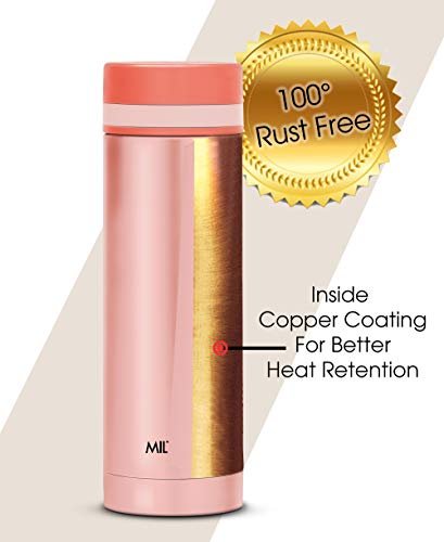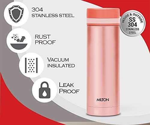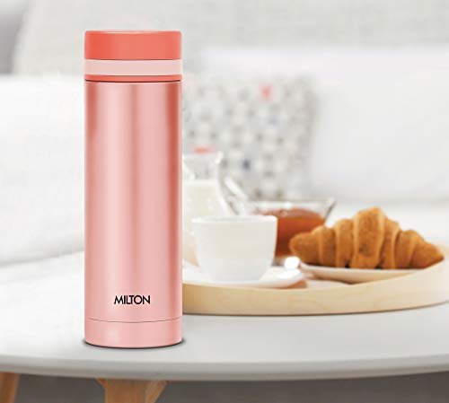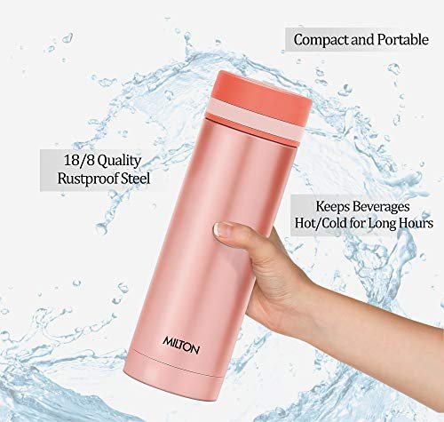 Best suited for Women and Kids Compact and portable Can easily carry in a purse Keeps beverages hot or cold for long hours 18/8 rust proof steel Color: Peach, Material: Stainless Steel Package Contents: 1 – Piece Slim Thermosteel Vacuum Insulated Hot & Cold Water Bottle (340 ml)