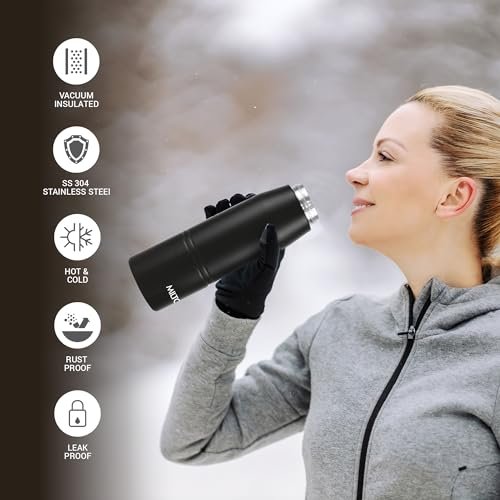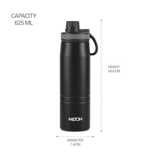 Milton Sparkle 600 Thermosteel Insulated Water Bottle, 625 ml, Black | Hot and Cold | Leak Proof | Office Bottle | Sports | Home | Kitchen | Travel | Easy to Carry | Rust Proof