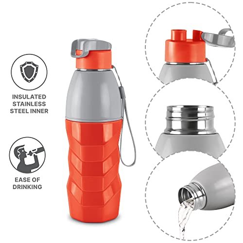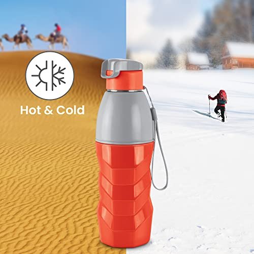 Color: Red; Material: Inner Steel, Outer Plastic; Package Content: 1 – Piece Steel Racer Insulated Water Bottle (520 ml); Dimension in cms (L x W x H): 8 x 8 x 24.8 Insulated 304 stainless steel interior that regulates the temperature and keeps the drink hot or cold for hours. Use for storing hot water up to 40°C temperature. The taste and nutritive value of the drinks remains intact. Making the bottle very appropriate choice for storing beverages. This bottle is easy to clean and maintain, Use a mild detergent or dish wash liquid and clean on the inside with a bottle brush. No matter where you go, you will never have to worry about carrying your water in a safe and secure manner again. This Bottle is unique in shape, it has leak proof technology, which make this bottle easy to carry at school, office, gym, hiking, treking, travelling. Filling the drink to full capacity ensures maximum temperature retention.