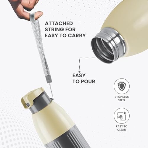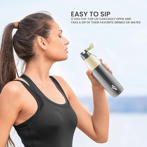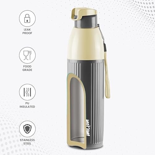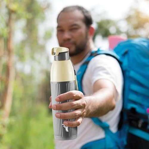Milton Steel Sierra 900 Insulated Inner Stainless Steel Water Bottle, 1 Piece, 630 ml, Green| Easy Grip | Leak Proof | Hot or Cold | School | Office |Treking | Travel Bottle