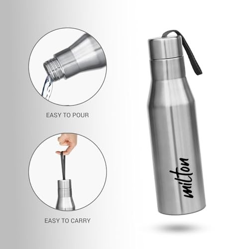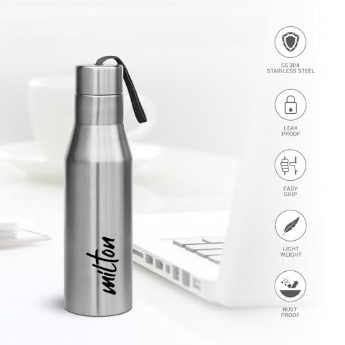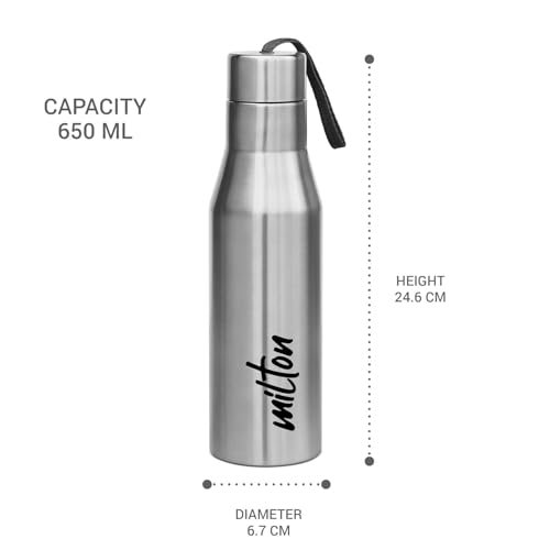 Color: Silver; Material: Stainless Steel; Package Content: 1 – Piece Super Water Bottle (650 ml); Dimension in cms (L x W x H): 6.7 x 6.7 x 24.6. Secure Grip: The bottle provides a secure grip, minimizing accidental slips during use. This feature makes it ideal for various activities, from workouts to outdoor excursions, ensuring that the bottle stays firmly in hand for uninterrupted hydration. Premium Grade Material: This water bottle is made from high-quality stainless steel, which is known for its durability, resistance to rust, and non-toxic properties. Stainless steel is a safe material for storing beverages and doesn’t leach chemicals into the contents. Leakproof Design: Equipped with a leakproof easy pour cap, the Milton Vogue bottle prevents spills and leaks, offering convenience and cleanliness for on-the-go hydration. Whether you’re commuting to work or exploring the outdoors, you can trust this bottle to keep your drinks contained and your belongings dry. Enhanced Hydration Experience: The bottle maintains the taste and freshness of beverages, ensuring a satisfying drinking experience for users. Whether you’re enjoying water, juice, or a sports drink, you can count on this bottle to deliver the full flavour and refreshment of your favourite beverages. Easy to Clean: Stainless steel is easy to clean and maintain. Using a steel water bottle is an environmentally friendly choice as it reduces the consumption of single-use plastic bottles.