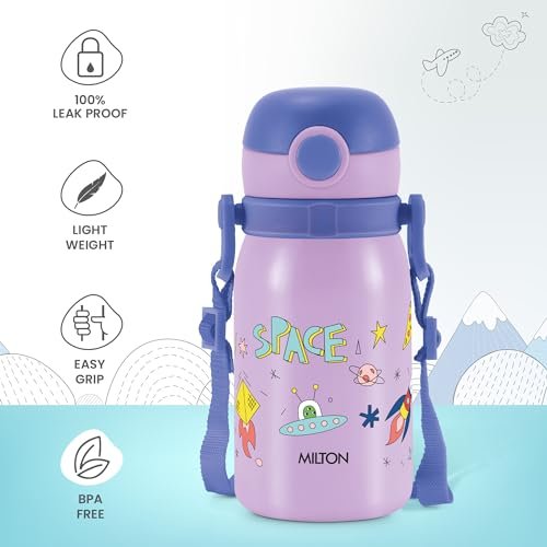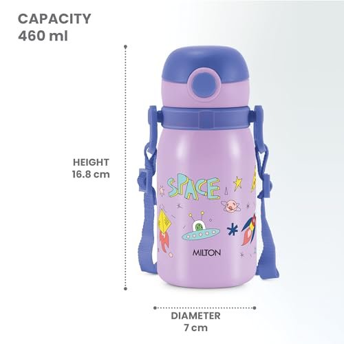 Color: Purple; Material: Stainless Steel; Package Content: 1 – Piece Torque 450 Kids Water Bottle (460 ml); Dimension in cms (L x W x H): 8.1 x 7 x 16.8 This water bottle is made from high-quality stainless steel, which is known for its durability, resistance to rust, and non-toxic properties. Stainless steel is a safe material for storing beverages and doesn’t leach chemicals into the contents. Torque is a sipper bottle. Its spill-proof design guarantees mess-free sipping, making it perfect for school, picnics, and playdates making them suitable for carrying in bags or backpacks. This Bottle is unique in shape, it has leak proof technology, which make this product easy to carry at school, travelling and picnic, it is Odour Free and 100 percent Food Grade With Unique style and Printing, your little one will be eager to stay hydrated throughout the day.