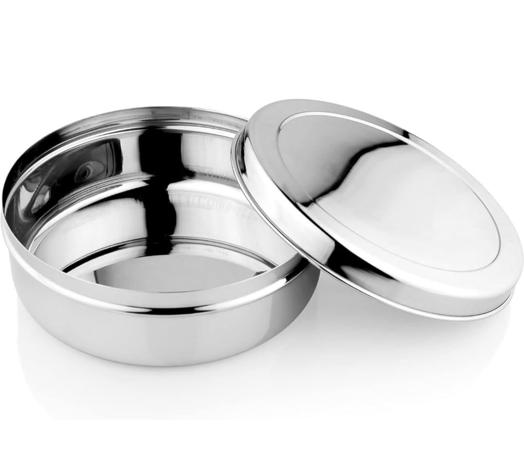 Storage container / Puri Dabba made from the finest stainless steel material which ensures strength, quality, and durability. This attractive mirror finishes flat canister can be used to store Puris, Rotis, Parathas, Snacks, Khakhara, mukhwas, dry fruits, chocolates, biscuits, etc. This flat storage container is rustproof and hygienic