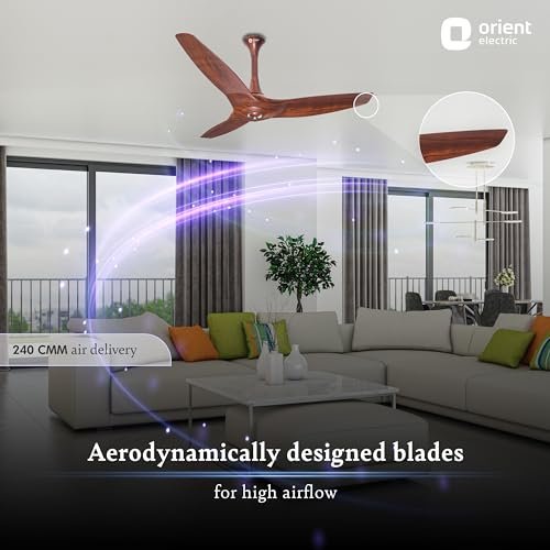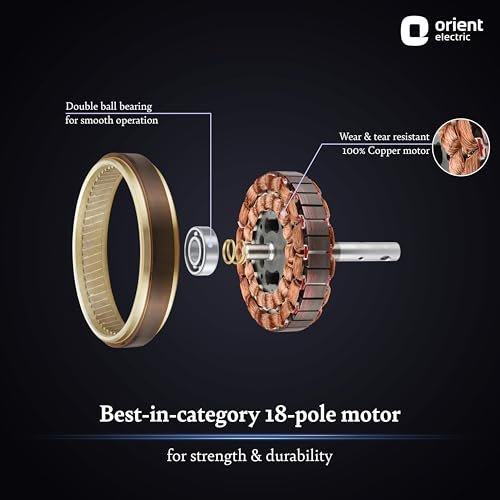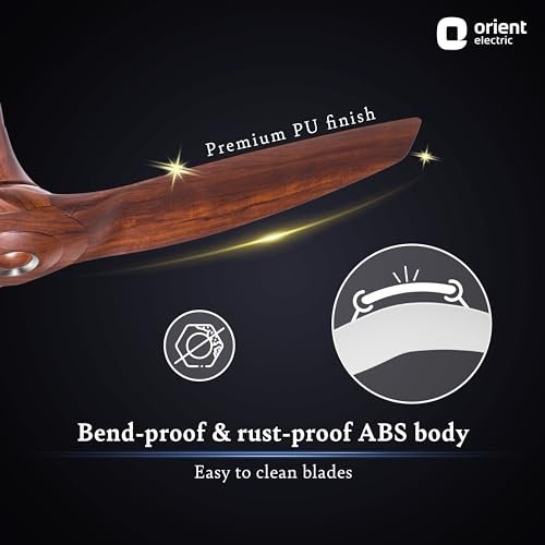 100% COPPER MOTOR FOR STRENGTH & DURABILITY: Strongest in the category, the 18-pole motor of this fan delivers powerful performance, while resisting wear & tear. HIGH AIRFLOW WITH AERODYNAMICALLY DESIGNED BLADES: The blades of this ceiling fan for living room are inspired by the unique airplane wings, for high air thrust & low air-cutting noise. The fan offers a high air delivery of 240 CMM. BEND-PROOF & RUST-PROOF ABS BLADES: The high-quality blades of this ceiling fan for living room are easy to clean & maintain with a premium PU finish. The ABS blades are made bend-proof and rust-proof to last long. WHISPER-QUIET OPERATION FOR SOUND SLEEP: The aerodynamic blades of this ceiling fan produce low air-cutting noise, contributing to its whisper-quiet operation that eases you into a sound sleep. TRENDY COLOR OPTIONS FOR MODERN INTERIORS: This Orient ceiling fan comes in seven color options of White, Caramel Brown, Mystic Gold, Daytone Grey, Orbes White, Roasted Coffee, and Wooden finish to enhance your home interiors. 2-YEAR WARRANTY FOR ULTIMATE PEACE OF MIND: Built to last long, the ceiling fan is protected against manufacturing defects with a 2-year warranty. PAN-INDIA SERVICE: Our strong, PAN-India service network spans over 650+ cities and 17000+ PIN codes. For any assistance related to our Orient ceiling fans, dial our customer helpline number.