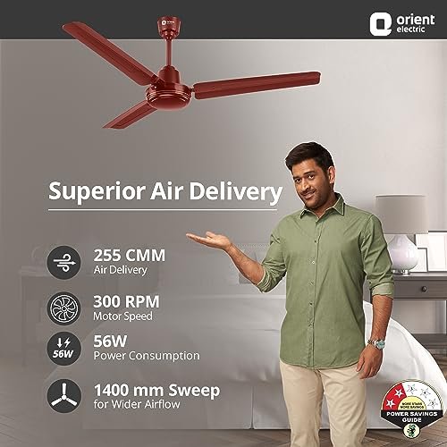 Superior performance with 300 RPM motor speed: With a motor speed of 300 RPM and an air delivery of 255 CMM, the ceiling fan offers a powerful performance, while consuming only 56W, even at the highest speed. A blade sweep of 1400 mm ensures wider airflow in every corner of the room. Ribbed, long-lasting Aluminium blades: The ribbed blades of the Orient ceiling fan are made with high-quality Aluminium for enhanced durability. The corrosion-resistant powder coating adds to the fan’s longevity. 100% Copper motor with Double Ball Bearings: The ceiling fan comes with 100% Copper motor that is strong, long lasting, and powerful in performance. The double ball bearings ensure smooth and reliable operation. Available in 3 colors: The same ceiling fan design is available in three elegant color options of Brown, White & Ivory. Convenience at its best with 5-year warranty: Built to last long, the strong & durable fan comes protected against manufacturing defects with a 5-year Warranty.