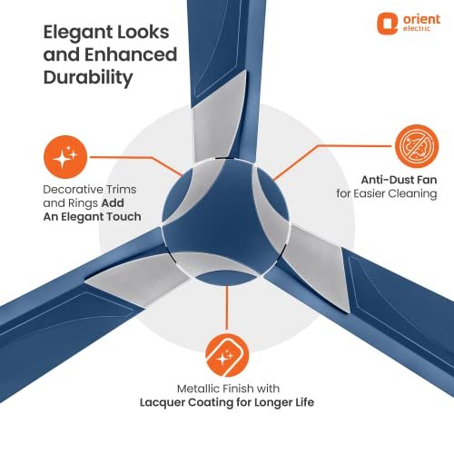 UNLOCK ENERGY SAVINGS UP TO ₹6500* ANNUALLY: This 5-star rated ceiling fan consumes 50% less energy than conventional fans, saving up to ₹6500* annually on your household’s electricity bills. IoT-ENABLED, OPERABLE FROM ANYWHERE: Compatible with Google Assistant, Alexa, and Orient Smart application, available on Google & Apple app stores, the fan gives you the freedom & convenience to control it with your voice or a touch of a button. CONVENIENCE AT YOUR FINGERTIPS WITH SMART REMOTE: Adjust fan’s speed, set timer of 2, 4, 6, or 8 hrs, switch on/off, and activate boost mode – from anywhere within 15 feet. Say goodbye to conventional regulators and hello to the convenience of remote. HIGH AIRFLOW WITH AERODYNAMICALLY DESIGNED BLADES: The BLDC ceiling fan delivers high airflow in every corner of your room with its aerodynamic blades. It comes with a motor speed of 330 RPM and an air delivery of 215 CMM. TWO-WAY ROTATION FOR SUMMER & WINTER: This all-season fan rotates anti-clockwise, circulating cool air through downdraft during Summers. The fan works as an air circulator and rotates clockwise to circulate hot air through updraft during Winters. TRENDY COLOR OPTIONS FOR MODERN INTERIORS: The BLDC ceiling fan comes in four trendy color options of White, Lakeside Brown, Cosmos Black, and Space Grey to enhance your home interiors. 3-YEAR WARRANTY FOR ULTIMATE PEACE OF MIND: Built to last long, the BLDC fan comes protected against manufacturing defects with a 3-year warranty, offering you the ultimate peace of mind. PAN-INDIA SERVICE: Our strong, PAN-India service network spans over 650+ cities and 17000+ PIN codes.