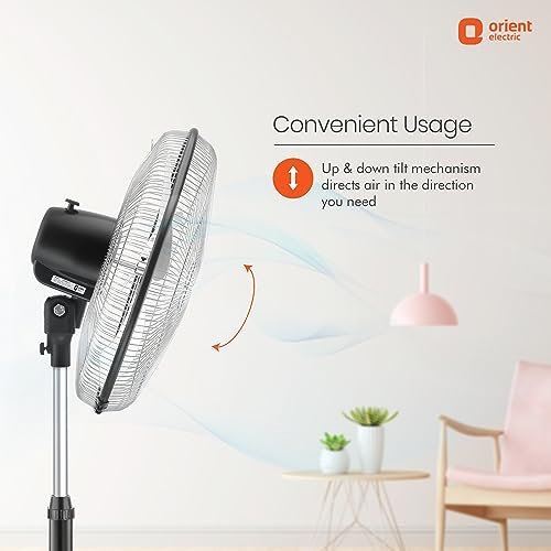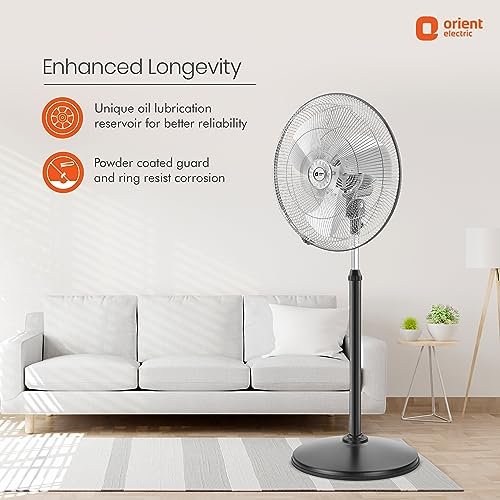 Orient Tornado Stand-II Black 450 mm Pedestal Fan – a powerful and versatile cooling solution designed to deliver a refreshing breeze with precision. With a substantial 450 mm blade span and three adjustable speeds, this fan operates at 1325 RPM (Revolutions Per Minute), providing optimal airflow for efficient and customizable cooling in any setting.