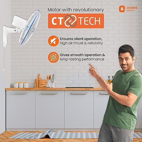 Smooth & reliable operation with revolutionary CTX technology: Featuring revolutionary CTX technology, the wall fan ensures high airflow, smooth & reliable operation at low power consumption. Strong airflow with 1330 RPM motor speed: With a motor speed of 1330 RPM and an air delivery of 90 CMM, the wall fan offers a powerful performance, while consuming only 58W, even at the highest speed. Thermal overload protection with auto reset functionality: The motor of the wall fan is equipped with thermal overload protection device with auto reset functionality for improved safety & durability. Customized airflow: Direct the airflow wherever you need with Orient wall fan that comes with up-down tilt mechanism & 90-degree oscillation. Set the speed of the fan to Low, Medium, or High using the pull cord. Convenience at its best with 2-year warranty: The wall fan comes protected against manufacturing defects with a 2-year warranty. Dial our toll-free number to schedule hassle-free assistance at your doorstep.
