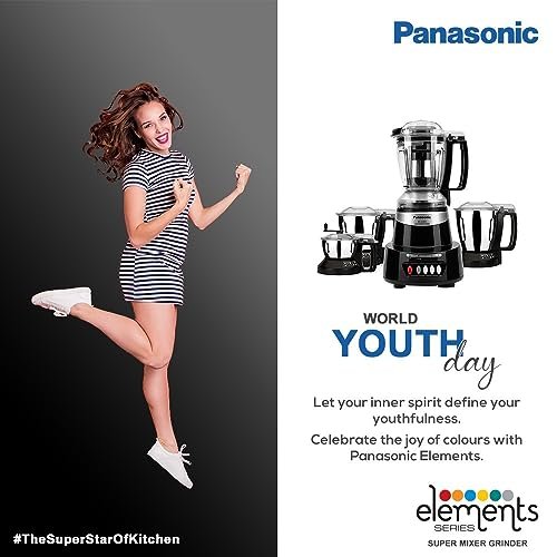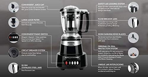Panasonic Mixer Grinder MX-AV425 (CHARCOAL BLACK) | Element Series Powerful 1500W (Max Motor Lock Wattage) 4 Jar (Three-304 Stainless Steel & One Juicer Extractor) |Warranty 2 Yrs Product & 5 Yrs Motor