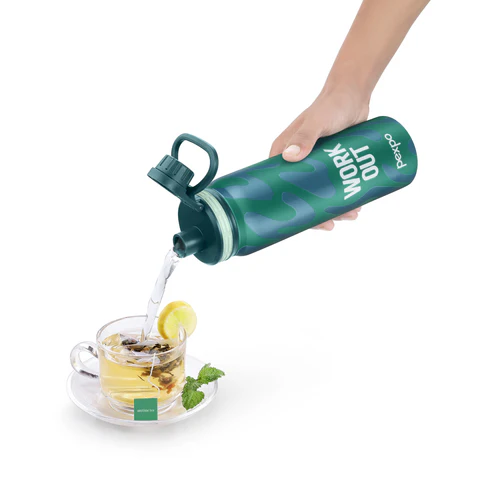 Leakproof dual-screw cap offers a narrow spout for sipping and a wide mouth for easy pouring and cleaning.