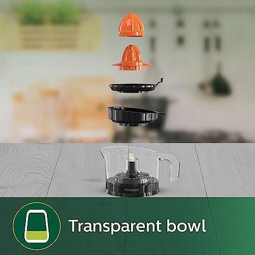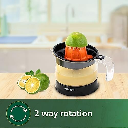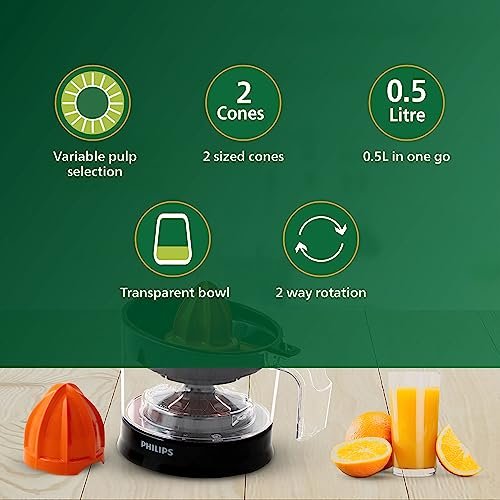 Philips Citrus press offers healthy fruit juices within minutes. Transparent bowl with 2 sized cones for big and small fruits along with 2 way rotation and adjustable pulp selector ensures maximum juice extraction with minimum effort.